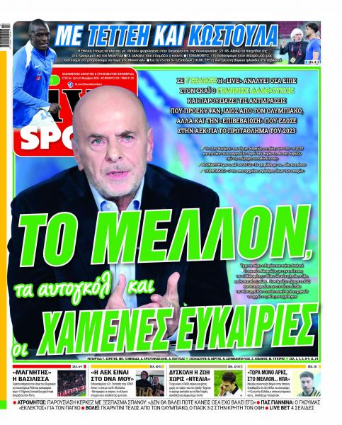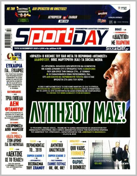 Χρόνος ανάγνωσης 1’ ΕΦΗΜΕΡΙΔΕΣ Τα αθλητικά πρωτοσέλιδα της Τρίτης (18/11) 18-11-2025 06:12 SDNA Newsroom 0 Facebook Twitter WhatsApp Messenger E-mail 0 SHARES Διαβάστε όσα γράφουν τα πρωτοσέλιδα των αθλητικών εφημερίδων σε Αθήνα και Θεσσαλονίκη. Αποφασίζει ο Μπαρτζώκας: Τα 3 ονόματα που παίζουν στον Ολυμπιακό για τη θέση του γκαρντ menshouse.gr «Διακωμωδείς τη γενιά του Πολυτεχνείου»: Το αμφιλεγόμενο σκίτσο του Αρκά που προκάλεσε αντιδράσεις (Pic) instanews.gr Γιάννης Αλαφούζος: Η απάντηση που δεν έδωσε (και θα έκλεινε πολλά στόματα…) dailymedia.gr Από τον Ιούνιο του 2012 ως σήμερα: Αυτό είναι το συνολικό ποσό που έχει βάλει ο Αλαφούζος στον ΠΑΟ βάσει των αυξήσεων μετοχικού κεφαλαίου instanews.gr Διθυραμβικές κριτικές, 100% στο Rotten tomatoes: Αμφιβάλλει κανείς ότι αυτή είναι η καλύτερη σειρά του 2025; menshouse.gr Η αναφορά του στη συνέντευξη: Ποια ήταν τα 3 ραδιόφωνα που πούλησε ο Αλαφούζος την περίοδο που ήταν πιεσμένος οικονομικά dailymedia.gr Ψαγμένη, low budget επιλογή: Ο Δούσης προτείνει μια από τις πιο όμορφες πόλεις της Ευρώπης για ονειρικό τριήμερο menshouse.gr 10 ερωτήσεις για πιστούς: Δεν είσαι αληθινός Παναθηναϊκός εάν δεν κάνεις τουλάχιστον 8/10 σε αυτό το κουίζ! menshouse.gr Τα αθλητικά πρωτοσέλιδα της Τρίτης (18/11) SHARE