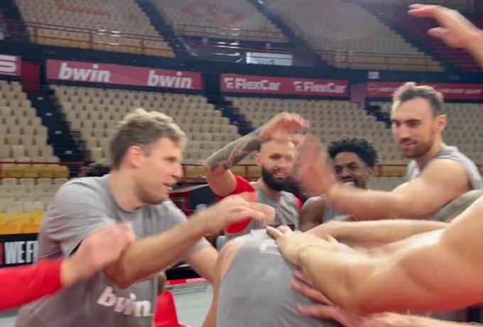 Οι «ερυθρόλευκοι» έκαναν έκπληξη στον Έλληνα άσο με τούρτα στην προπόνηση, με τους συμπαίκτες του και τα μέλη του προπονητικού επιτελείου να του εύχονται.