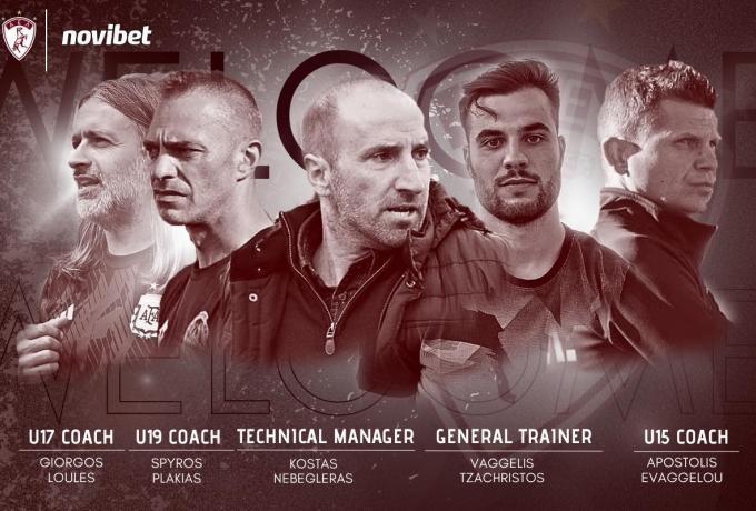 Προπονητής της Κ19 αναλαμβάνει ο Σπύρος Πλακιάς, της Κ17 ο Γιώργος Λουλές και της Κ15 ο Αποστόλης Ευαγγέλου. Γυμναστής όλων των τμημάτων θα είναι ο Βαγγέλης Τζαχρήστος, ενώ στο ρόλο του τεχνικού διευθυντή θα βρίσκεται ο Κώστας Νεμπεγλέρας.