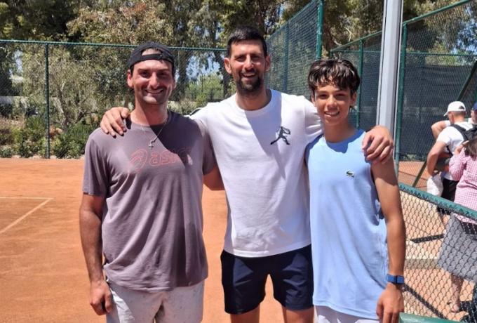 Ο νεαρός τενίστας δημοσίευσε μια φωτογραφία με τον Νόλε και τον Χρήστο Αντωνόπουλο από το κλαμπ 91 Athens Riviera της Γλυφάδας και ευχαρίστησε τον Σέρβο θρύλο για τις συμβουλές του.