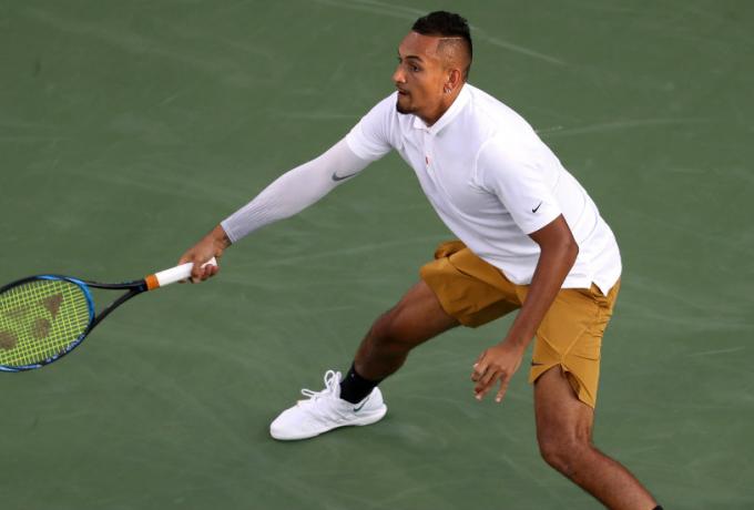 Στο 1ο σετ, όλα έμοιαζαν να είναι υπέρ του Κατσάνοφ, που «έσπασε» το σερβίς του αντιπάλου του και έκανε το 2-4, αλλά ο Κύργιος ανέκαμψε, επέστρεψε από το 2-5 και έστειλε το σετ στο tie break, για να «σπάσει» δύο φορές το σερβίς του αντιπάλου του και να το πάρει με 7-3.